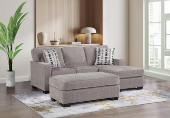 SECTIONAL: 87″ X 60 X 36″h OTTOMAN: 39″ X 39 X 19″h