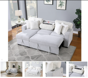 Experience the epitome of style and functional design with this Pull Out Sofa Bed. Adorned in an exquisite blending of white and grey fabric, this piece adds a touch of contemporary sophistication to any living space.